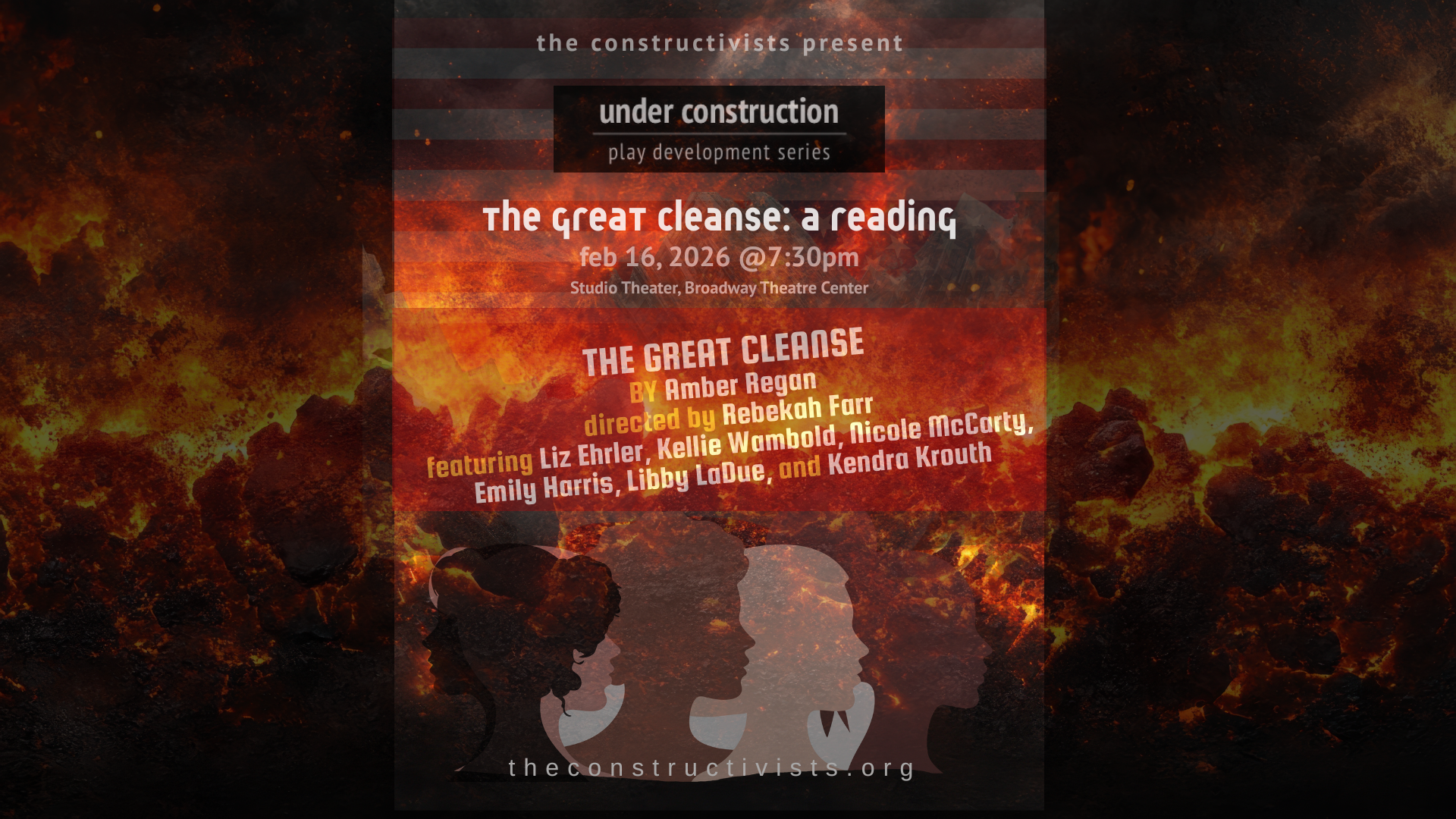 WHAT: The Great Cleanse, by Amber Regan with Andrew Hobgood and The Constructivists, an Under Construction 2026 Reading